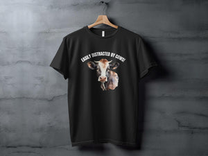 Funny Cow T-shirt for Women, "Easily Distracted by Cows" Quote, Casual Farm Animal Tee, Cute Cow Lover Gift, Soft Cotton Shirt